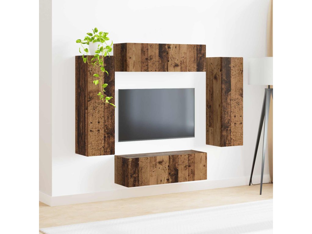 Sada televizního nástěnného kabinetu Nástěnný 4 pcs Staré dřevo [3408932]