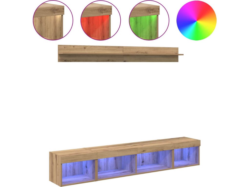 Sada televizního nástěnného kabinetu s LED 5 pcs Artisanový dub [3402953]