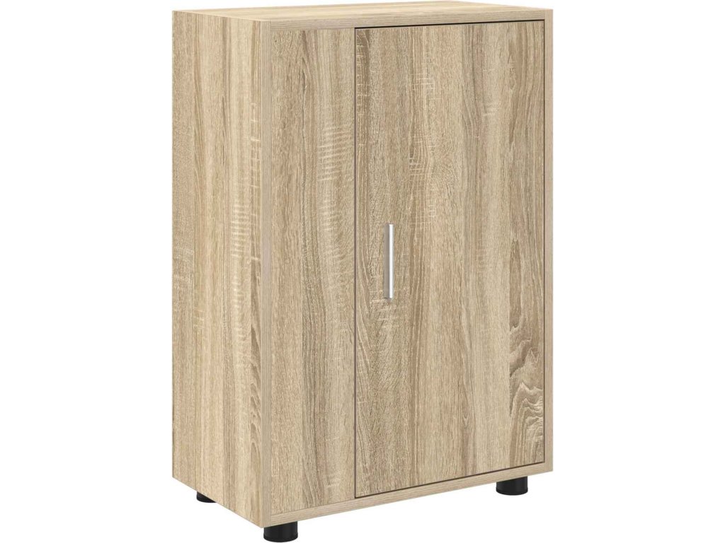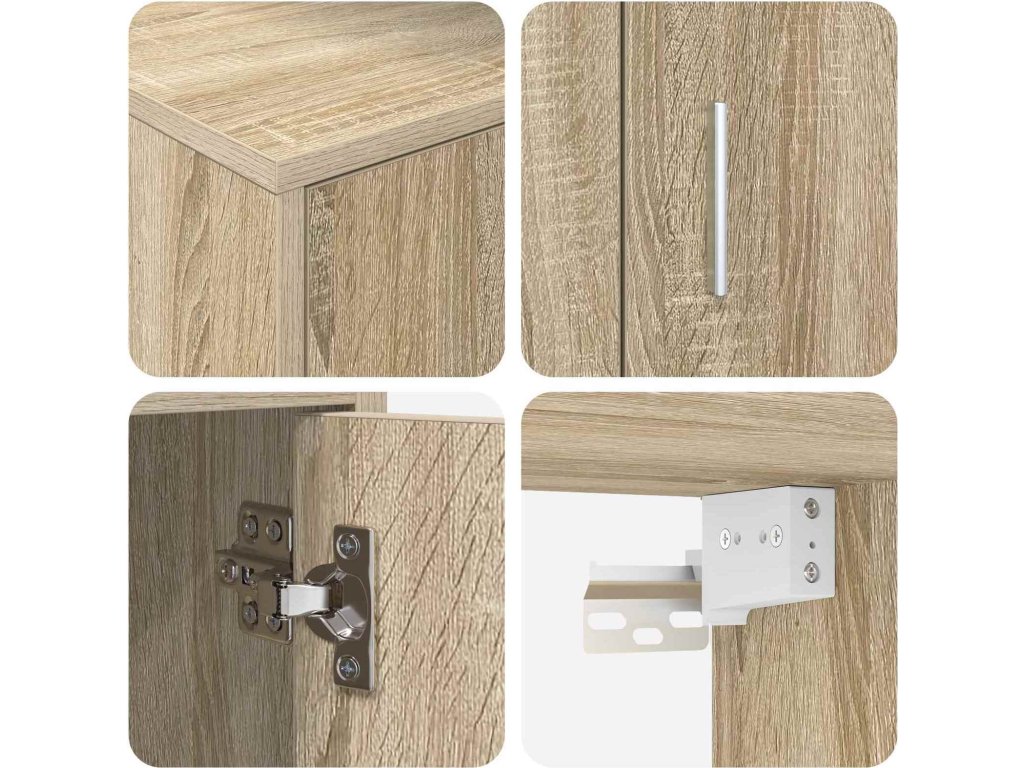 - Konstrukce z kompozitního dřeva Tato skříňka je z kvalitního kompozitního dřeva, takže je spolehlivá a vypadá peckově. Materiály jí dodávají odolnou stavbu a atraktivní vzhled, ideální do moderních interiérů.
