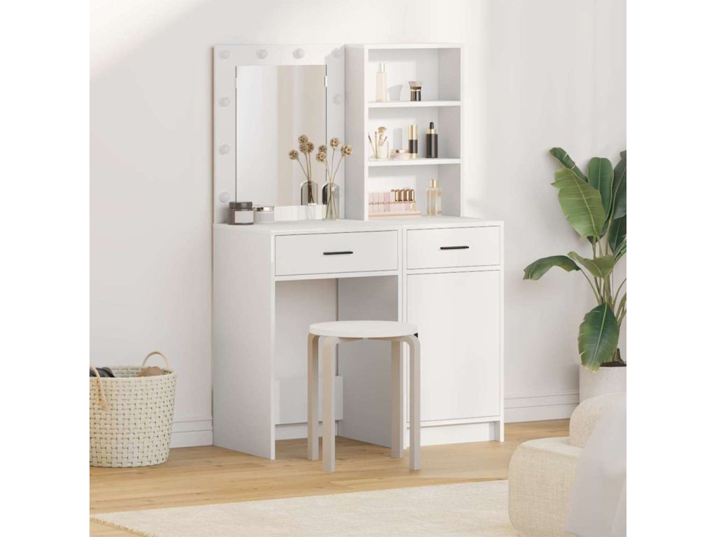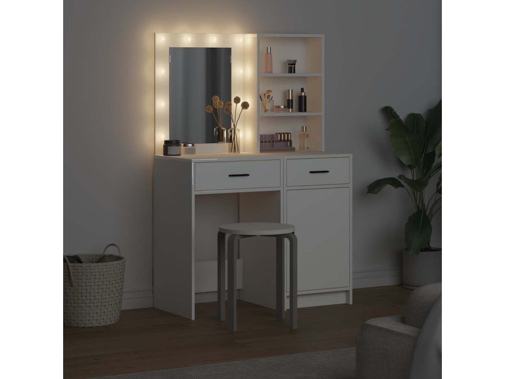 Sada toaletního stolku s LED 2 pcs Bílá kompozitní dřevo [3334272]