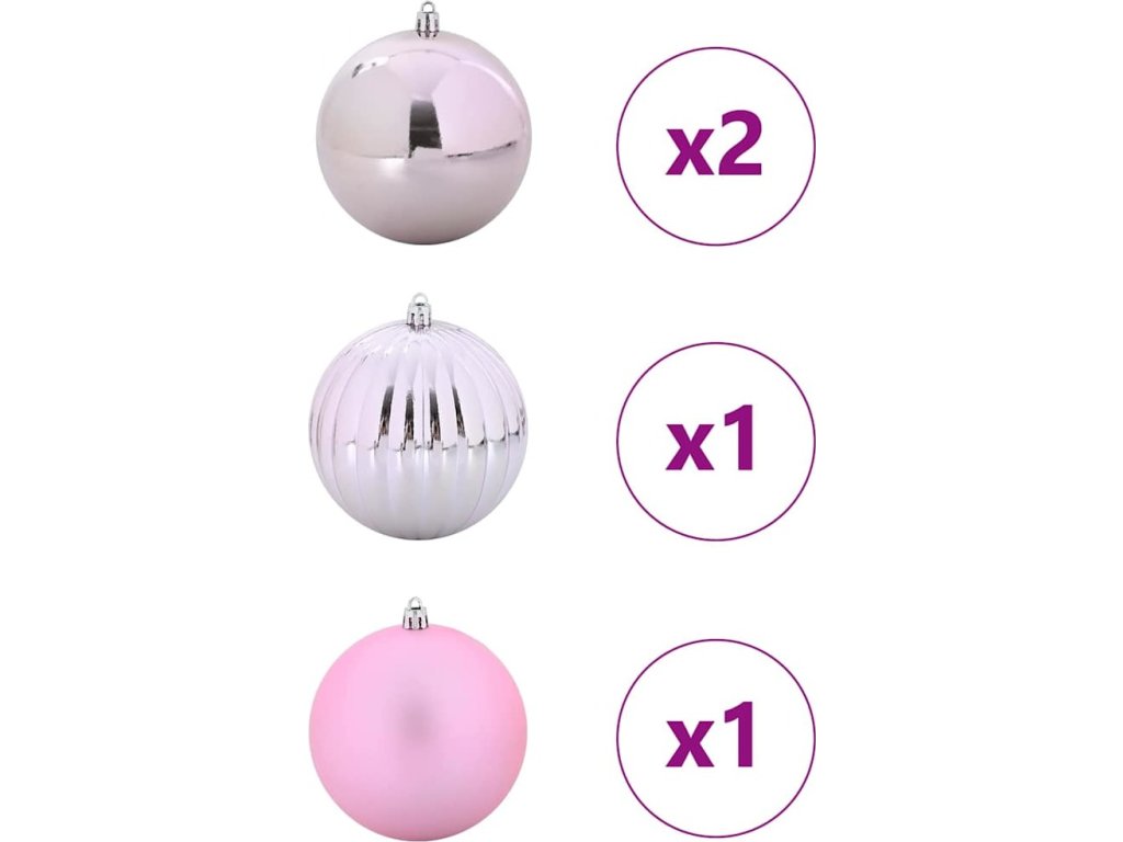 - Materiály: Tento ornamentální set je vyrobený z odolného plastu, takže vydrží sezónní použití a zároveň má super vzhled. Díky lehkému a nerozbitnému materiálu se minimalizuje riziko poškození, a tak si můžete baňky užívat rok co rok.