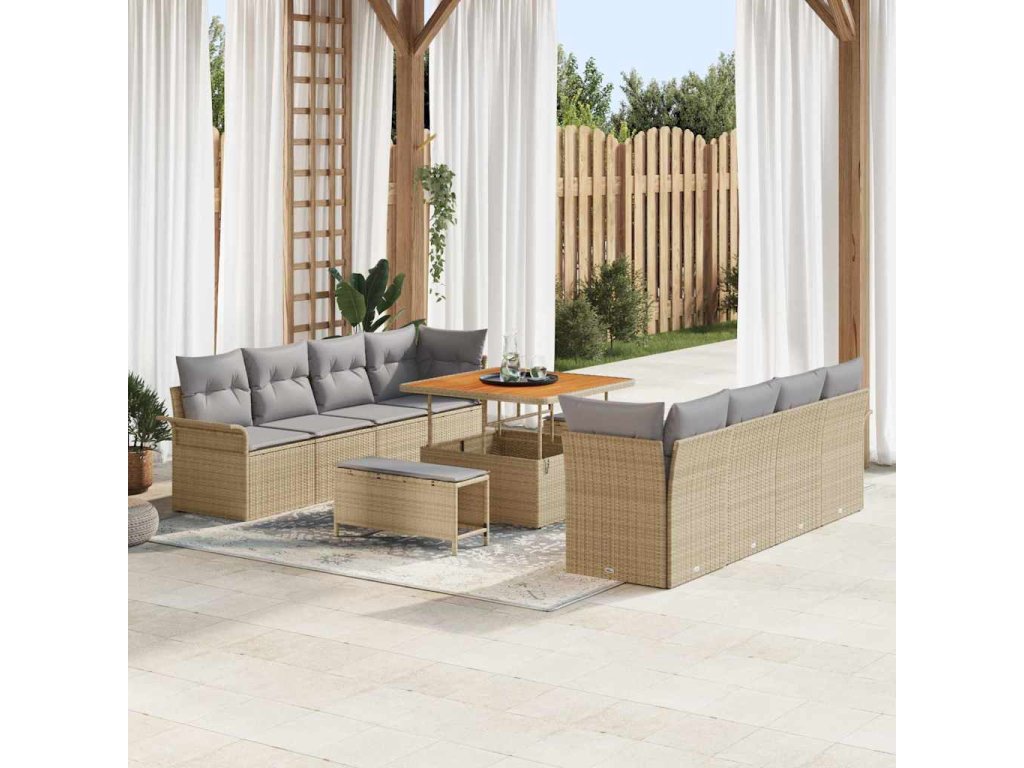Sada zahradních pohovek s polštářem 11 pcs Béžová a Světle šedá [3364067]