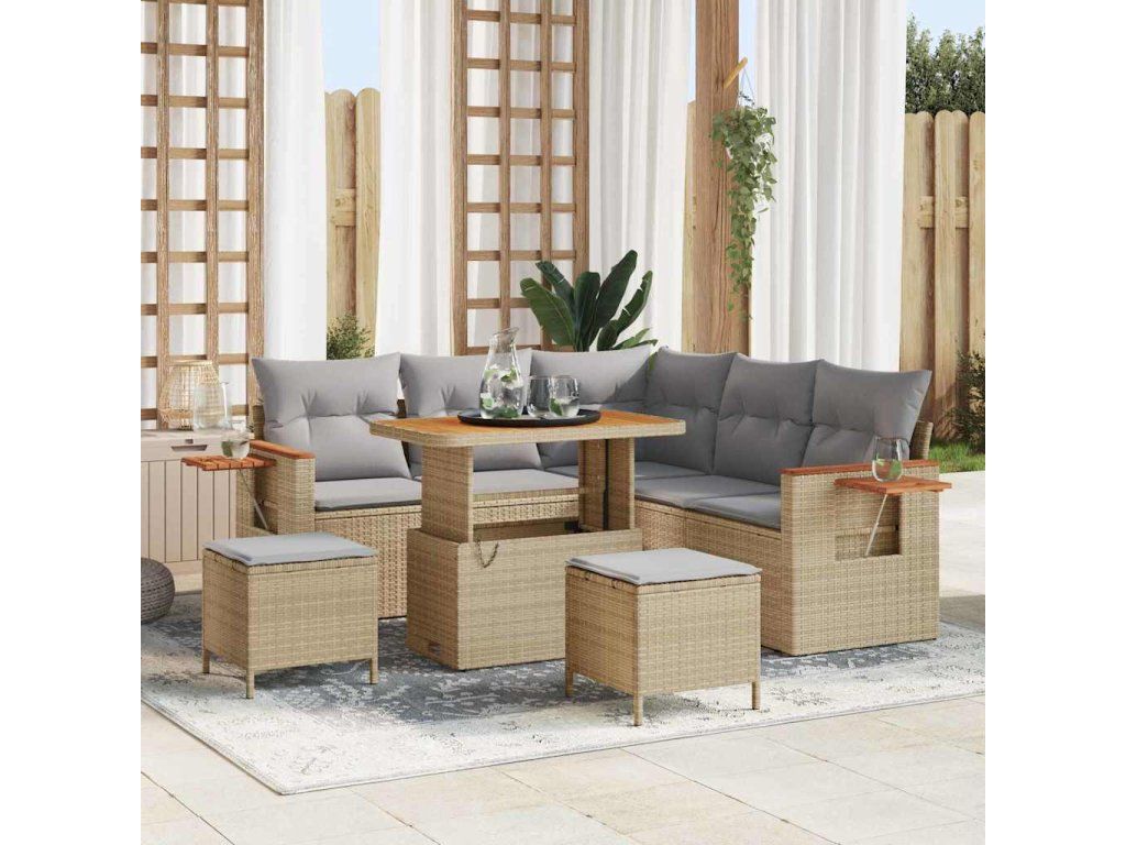 Sada zahradních pohovek s polštářem 8 pcs Béžová a Světle šedá [3363177]