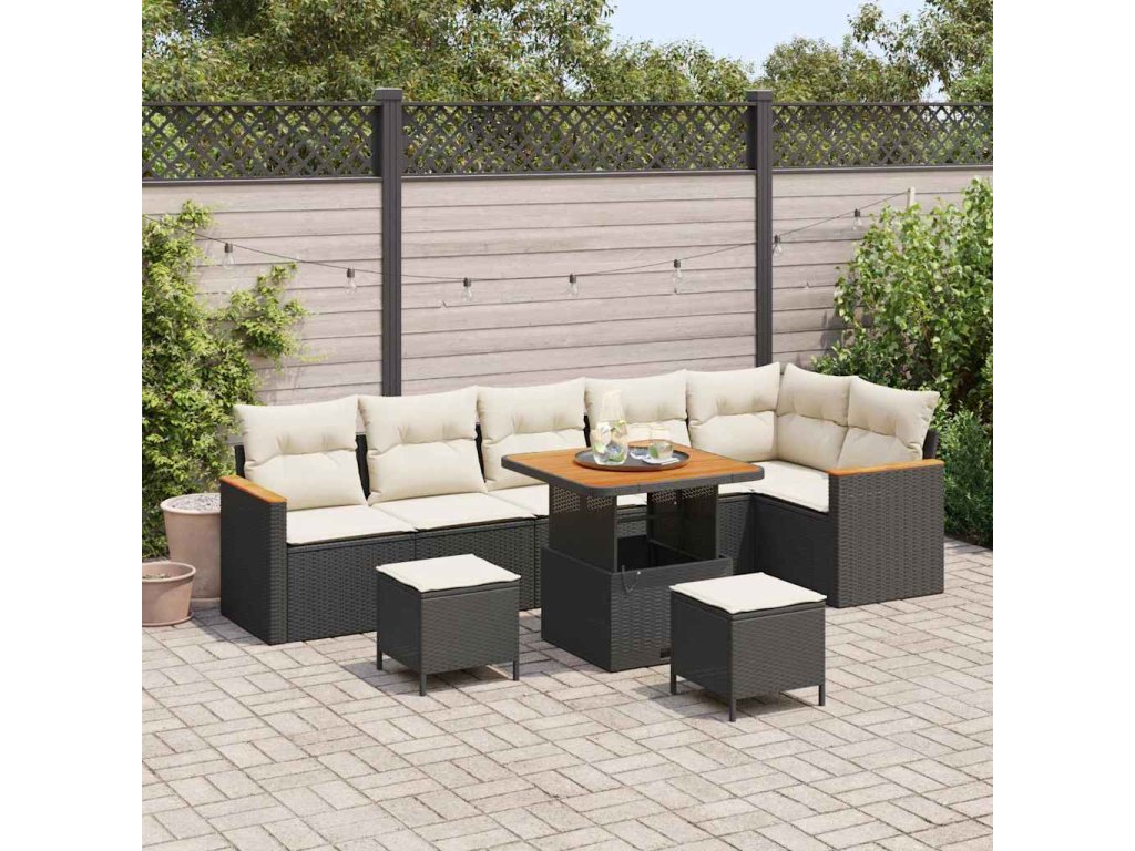 Sada zahradních pohovek s polštářem 9 pcs Černá Poly ratan [3365010]