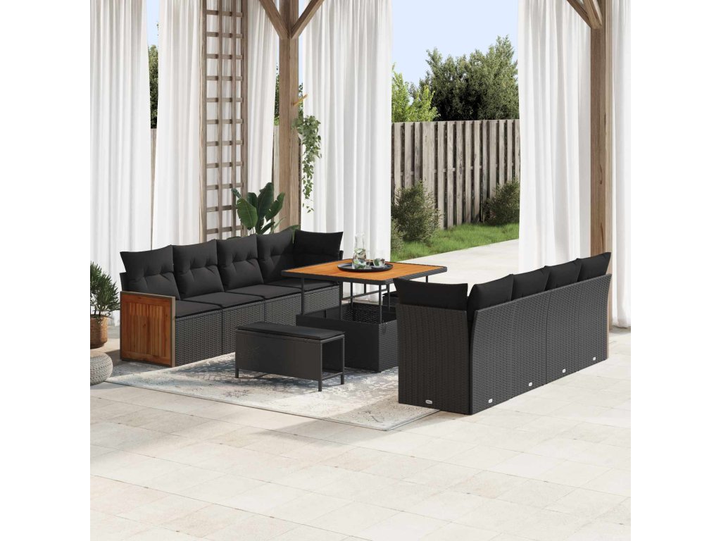 Sada zahradních pohovek s polštářem 11 pcs Černá [3363284]