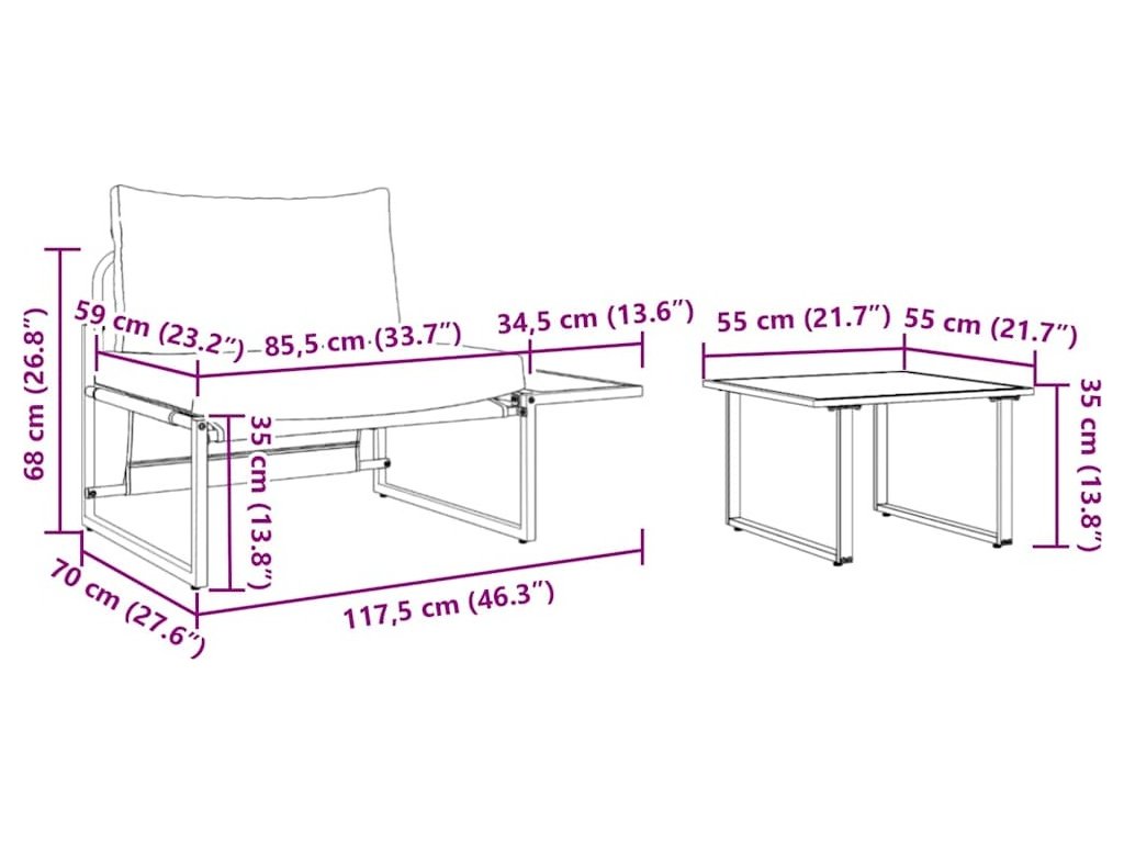 | 1 x stůl: | 55 x 55 x 35 cm (DxŠxV) |