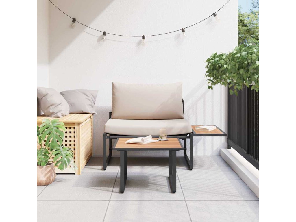 Tahle zahradní sedací souprava představuje moderní venkovní eleganci s jednoduchým a funkčním designem. Je vyrobena pro použití na zahradě a terase, její ocelový rám zaručuje pevnost a masivní akáciový povrch dodává rustikální nádech. Kontrastní tmavé nohy podtrhují její šik styl, a dělají z ní výrazný doplněk do každého venkovního prostoru. Ideální k pořádání letních setkání nebo užívání klidných večerů, tenhle set ti přinese i pohodlí, i styl.