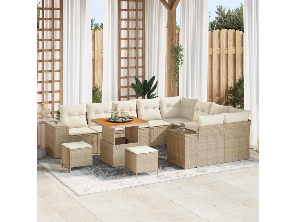 Sada zahradních pohovek s polštářem 12 pcs Béžová a krémová [3363991]