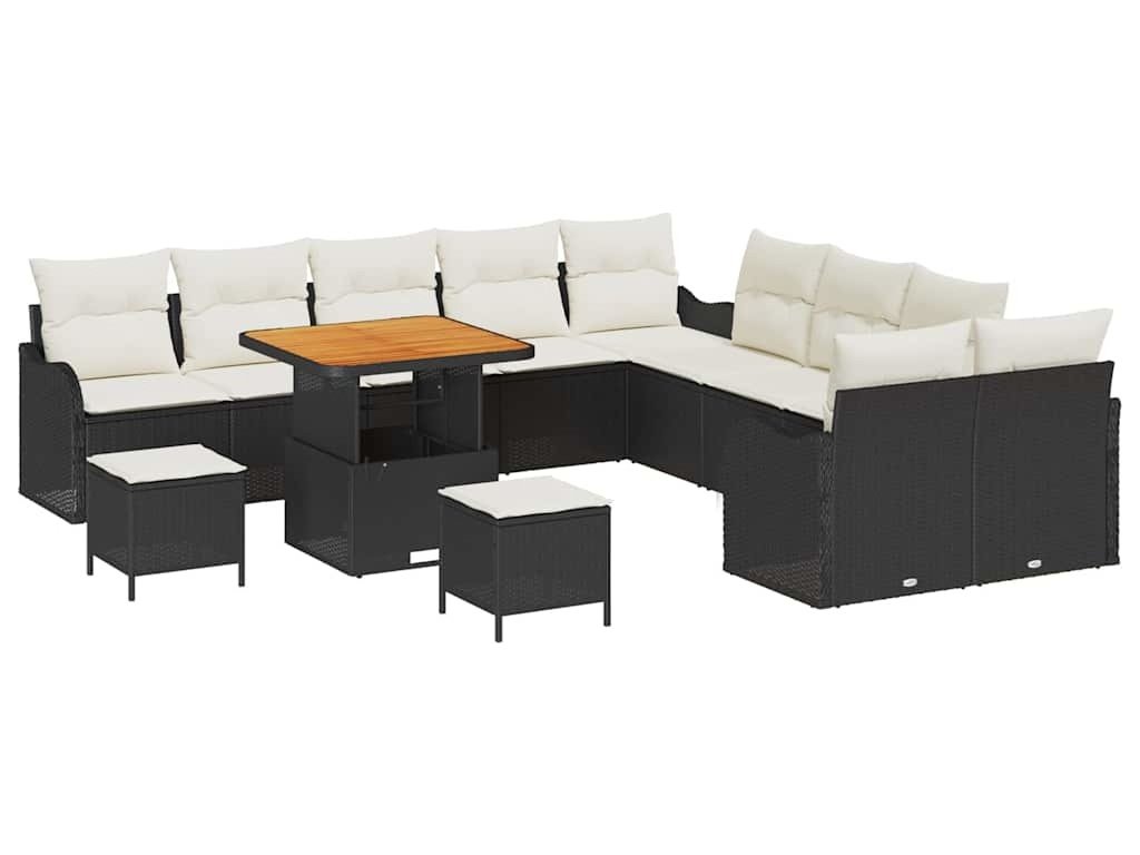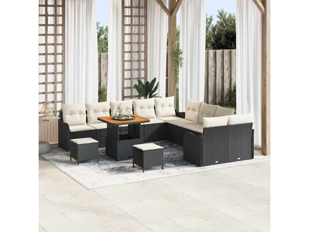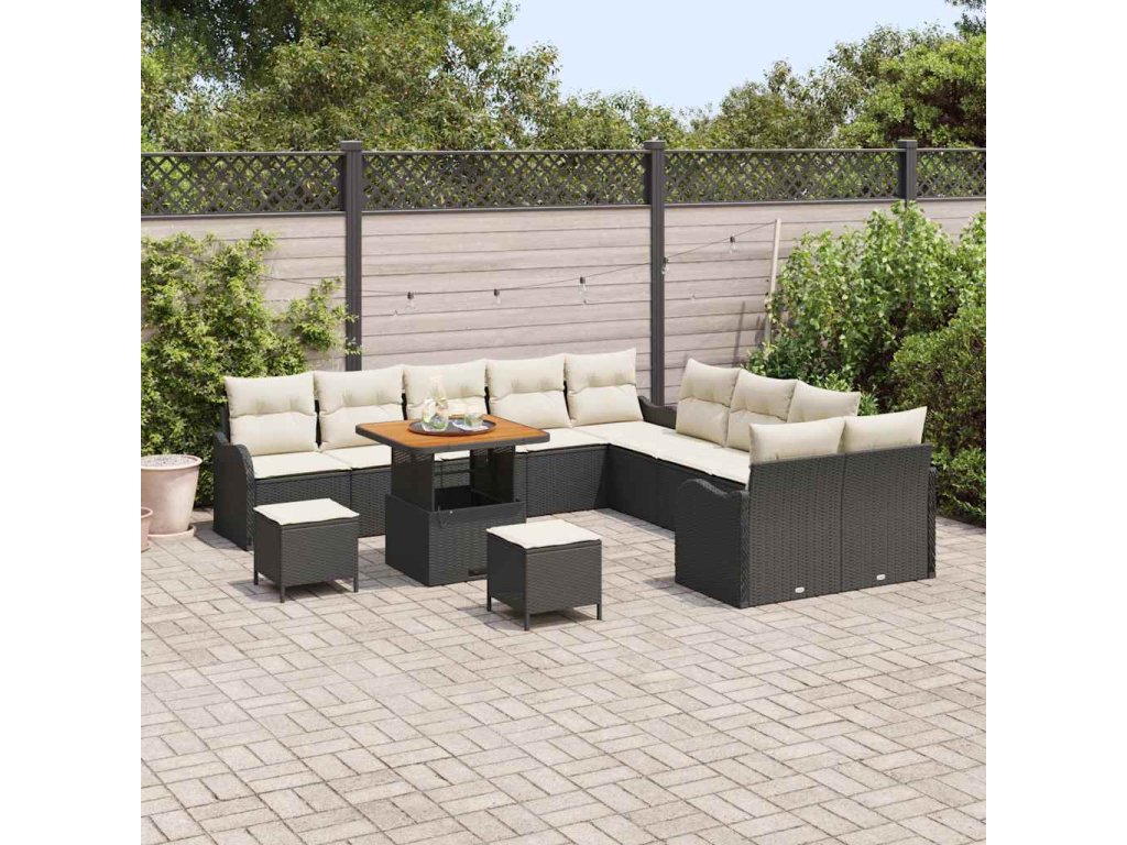 Sada zahradních pohovek s polštářem 13 pcs Černá a krémová [3364270]