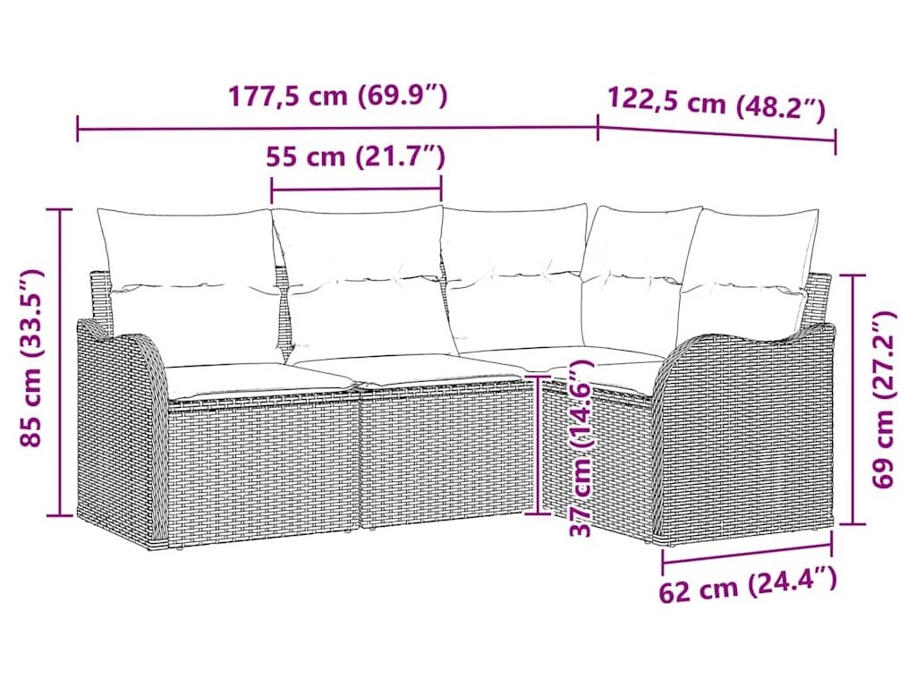 - 4 x sedací polštář: 55 x 55 cm (D x Š)