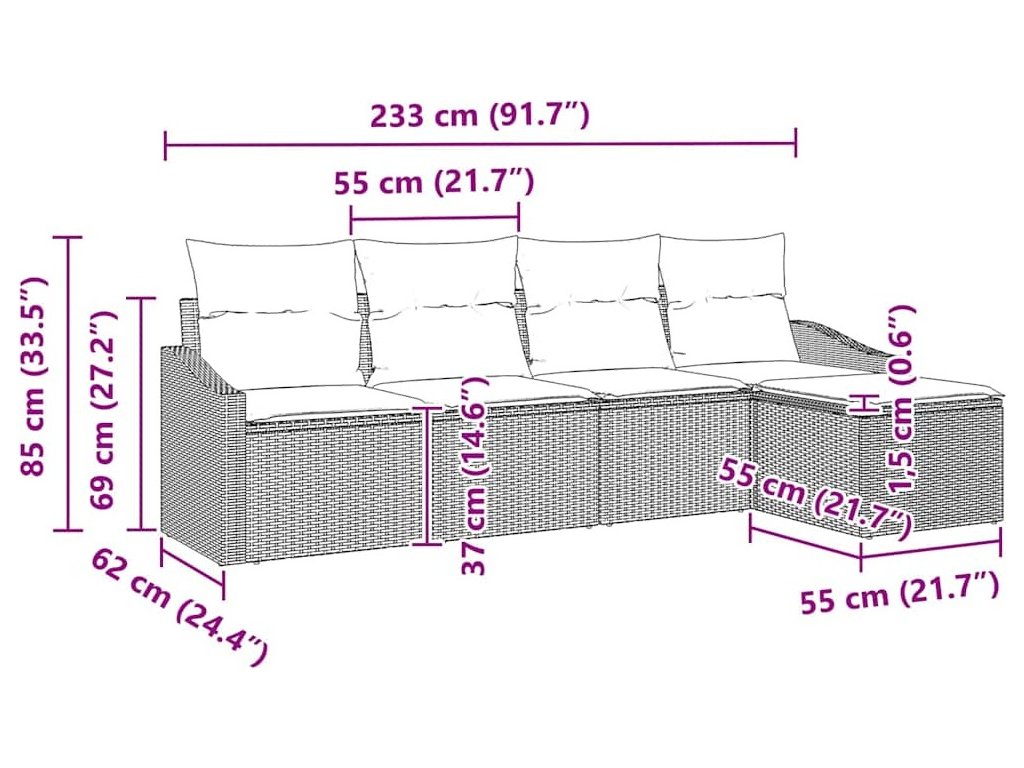 - Kvalitní materiály: Sofa set je z prvotřídního poly ratanu, co odolává počasí, a přitom vypadá skvěle. Rám s práškovým povrchem poskytuje dobrou oporu, což činí tento set spolehlivou volbou pro venkovní prostředí.