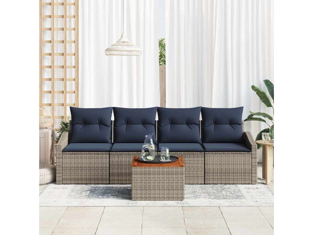 Sada zahradních pohovek 5 pcs Šedá a námořnická modrá polyratan [3356435]