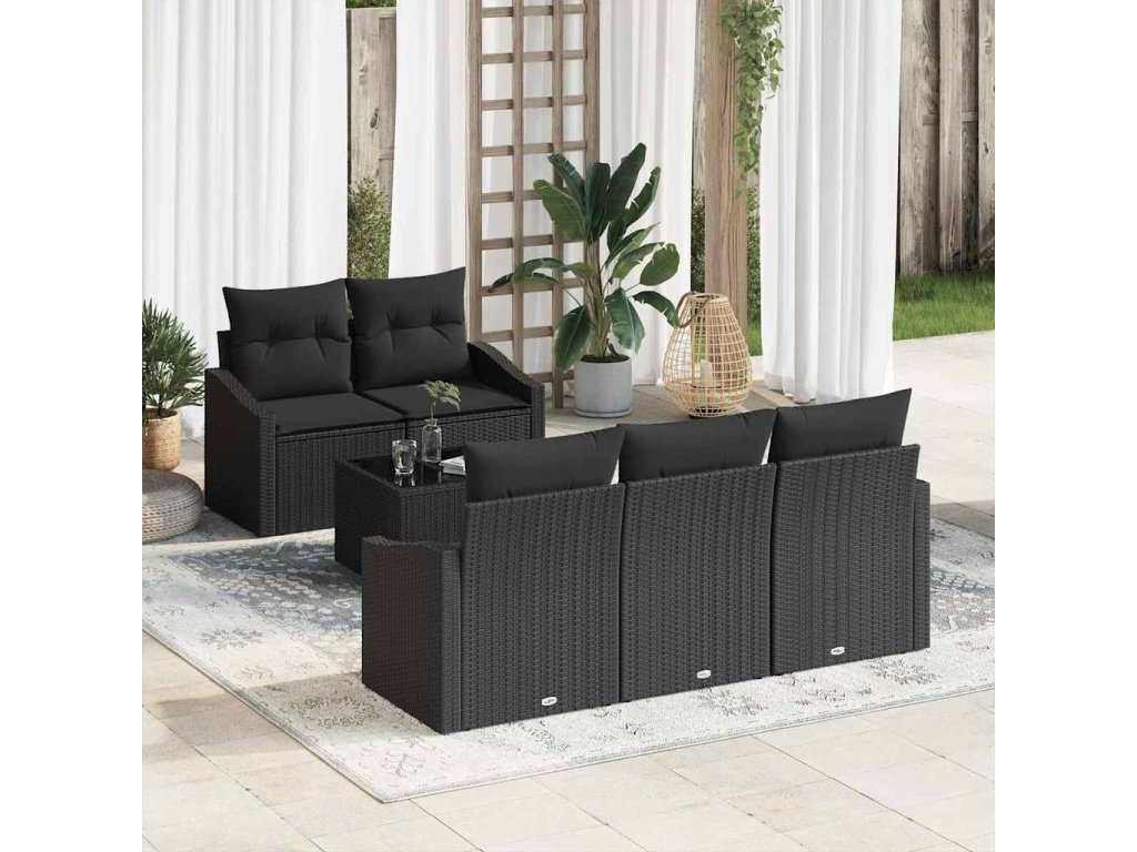 Set pohovek s polštářem s úložištěm 6 pcs Černá polyratan [3355272]
