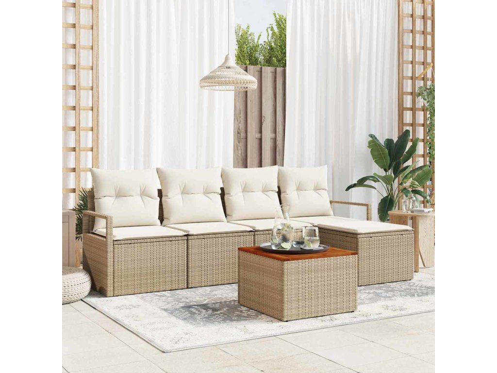 - Komplexní materiály: Pohovka spojuje odolný poly ratan s masivním akáciovým dřevem pro perfektní rovnováhu síly a elegance. Akáciové dřevo dodává přírodní nádech a skvěle ladí s jakýmkoli zahradním stylem. Materiály odolné vůči dešti, slunci a času zaručují, že tento set bude vaším společníkem na každém výletu venku.
