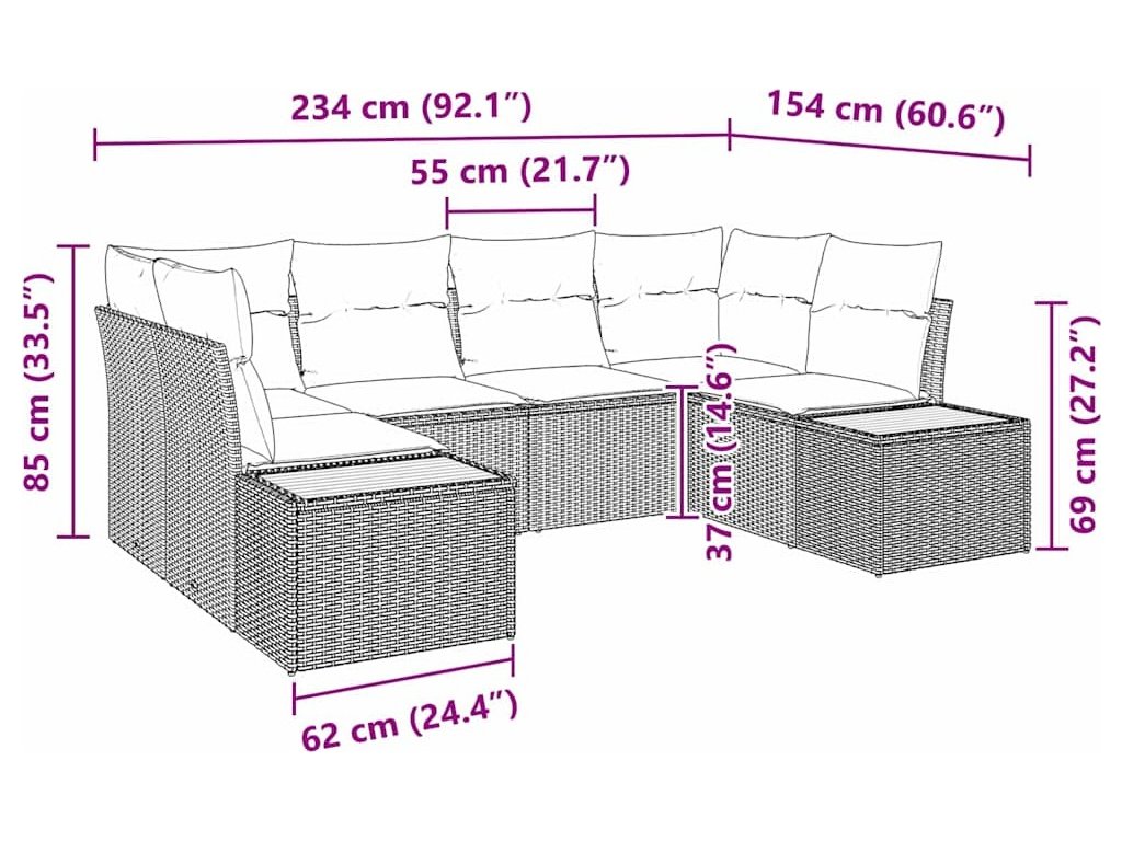 | 2 x Rohový sedák: | 62 x 62 x 85 cm (Š x H x V) |