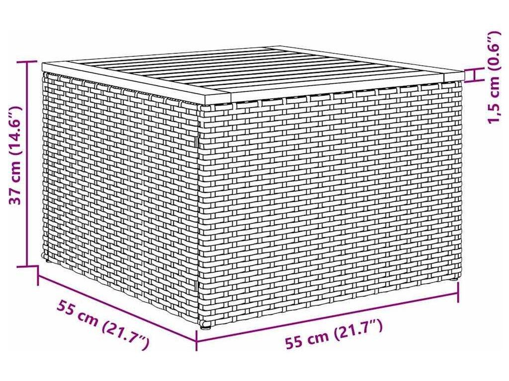 - Materiál: PE ratan a práškově lakovaná ocel a masivní akáciové dřevo