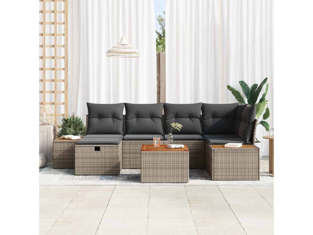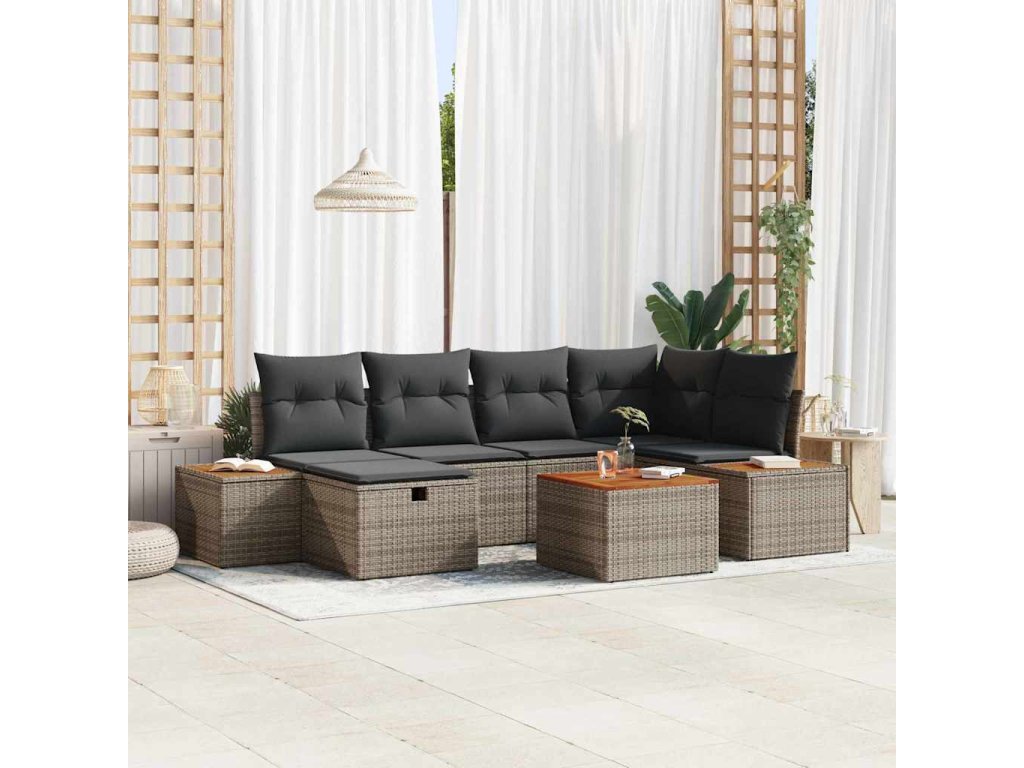 Sada zahradních pohovek 7 pcs Šedá 55 x 62 x 69 cm Poly ratan [3360968]