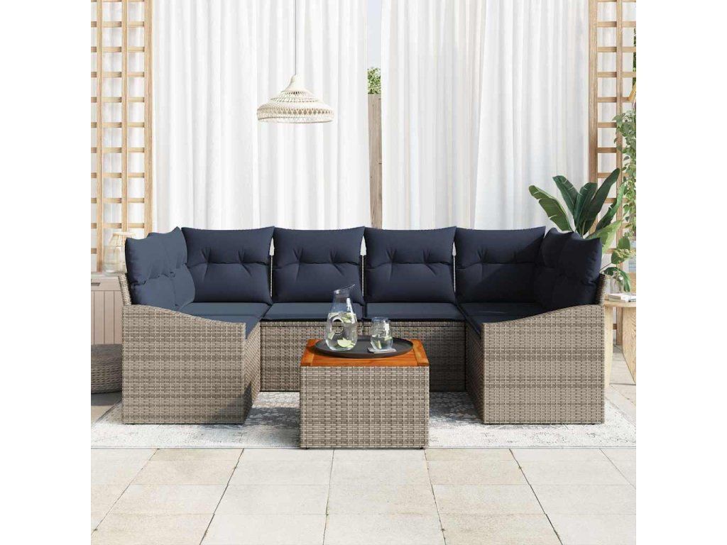 Sada zahradních pohovek 7 pcs Šedá a námořnická modrá polyratan [3356456]
