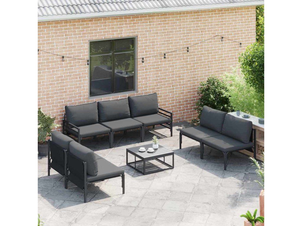 Sada zahradních pohovek s polštářem 8 pcs Černá Ocel [3378982]