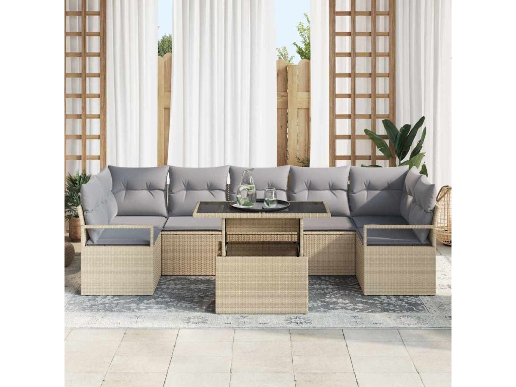 Tento modulární zahradní sofa set nabízí skvělou kombinaci stylu a funkčnosti, ideální pro terasy a zahrady. Je moderně navržen a odolává i těm nejtěžším venkovním podmínkám, takže poskytuje příjemné prostředí pro relaxaci a setkání s přáteli. Užívejte si variabilní sezení s tímto přizpůsobitelným setem, který slibuje pohodlí a praktičnost v průběhu celého roku.