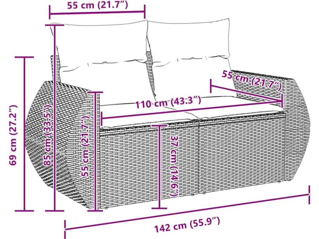 - Kvalita poly ratanu: Tenhle set je navržený z odolného poly ratanu, který zvládne i drsné počasí a vyniká skvělou výdrží na jaře a v létě. S vysokou UV odolností je to spolehlivá volba pro dlouhé venkovní užívání. Propletená struktura zajišťuje pohodlí a dodává atmosféru elegantního prostředí.