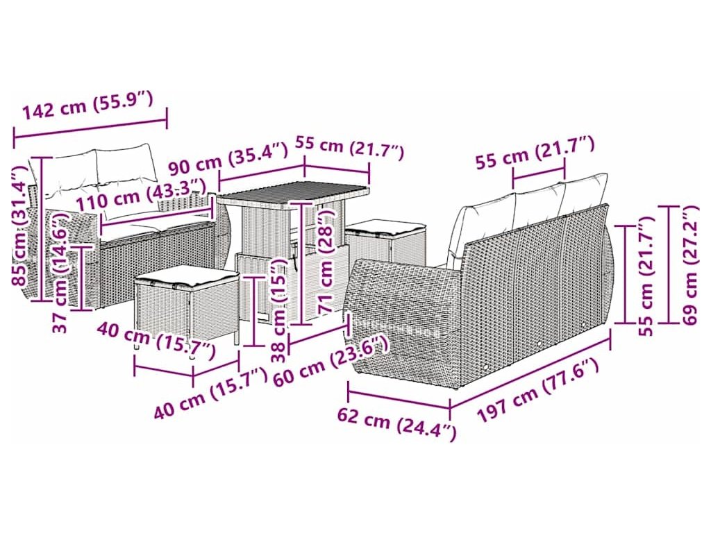 - Univerzální použití: Určený jak do zahrad, tak teras a verand, tenhle set je skvělý pro různé nezapomenutelné chvíle – od běžného odpočinku po formální akce. Také kvůli flexibilitě se snadno přizpůsobí různým prostředím a podpoří socializaci.