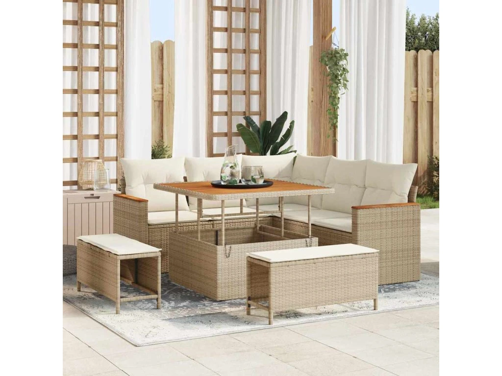 Tahle zahradní sedací souprava spojuje moderní styl s funkčností, ideální pro přetvoření vašich venkovních prostor na super odpočinkové zóny. S čistými liniemi a minimálním zdobením se skvěle hodí do zahrad a teras, a zvyšuje atraktivitu každého prostoru. Navržena tak, aby byla maximálně flexibilní, modulární uspořádání umožňuje přizpůsobit rozložení podle vašich potřeb, ať už pro neformální posezení nebo klidný večer o samotě. Robustní materiály zajišťují dlouhou životnost, což činí tento set rozumnou volbou pro každou venkovní obytnou plochu.