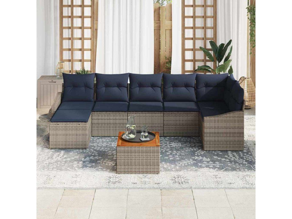 Sada zahradních pohovek 8 pcs Šedá a námořnická modrá polyratan [3356533]
