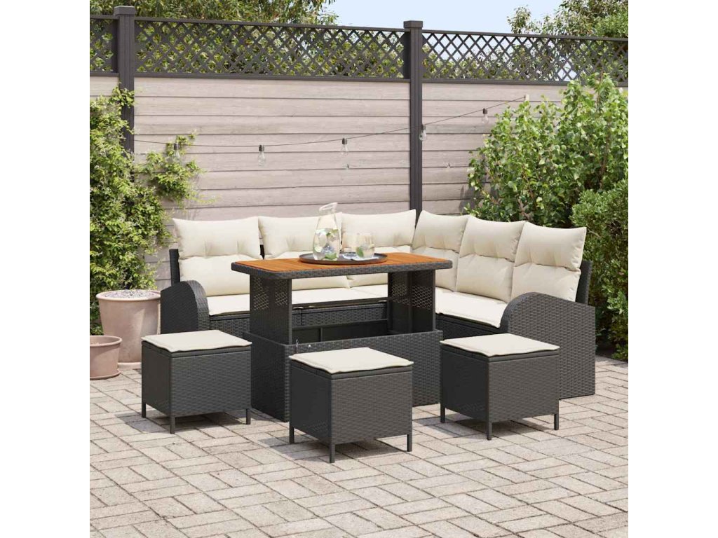 Sada zahradních pohovek s polštářem 9 pcs Černá a krémová [3364350]