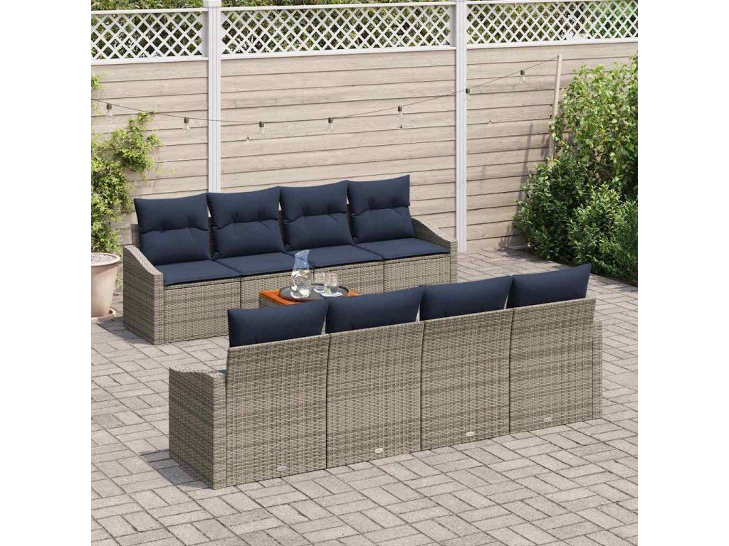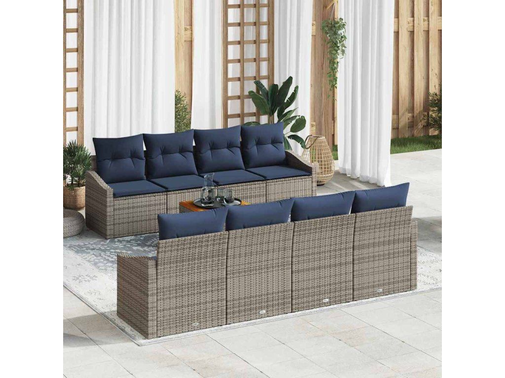 Sada zahradních pohovek 9 pcs Šedá a námořnická modrá polyratan [3356477]