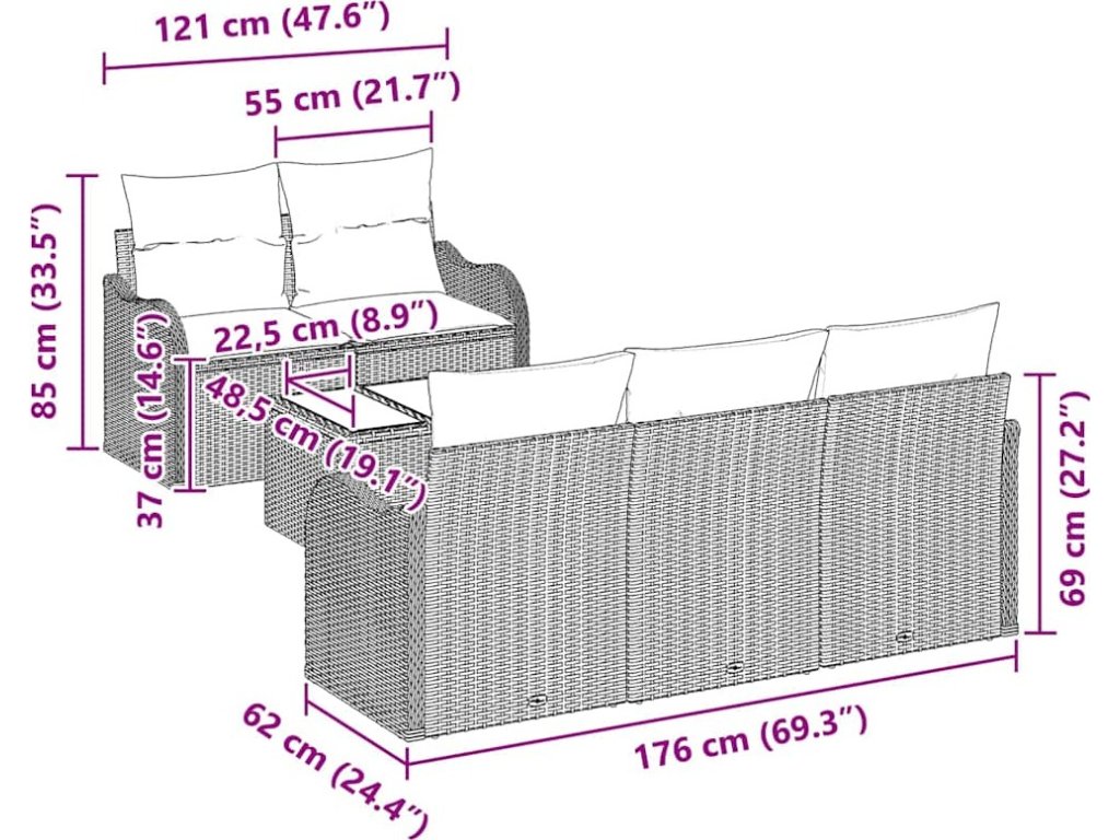 | 4 x arm sofa: | 55 ×62 ×69 cm (D׊×V) |
