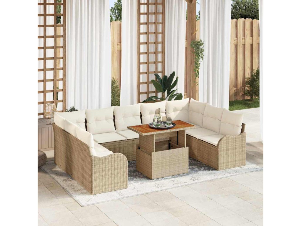 Sada zahradních pohovek s polštářem 10 pcs béžová a krémová [3349504]