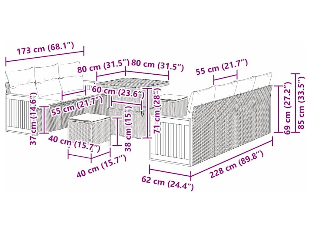 - Celkové rozměry: 80 x 80 x 71 cm (D x Š x V)