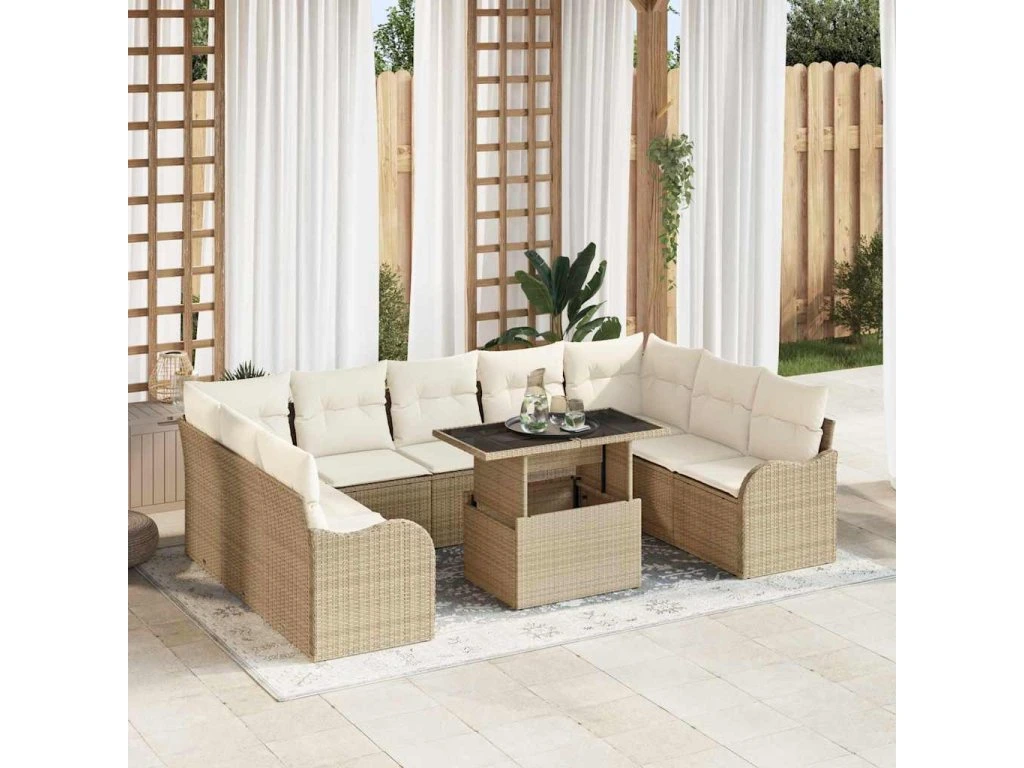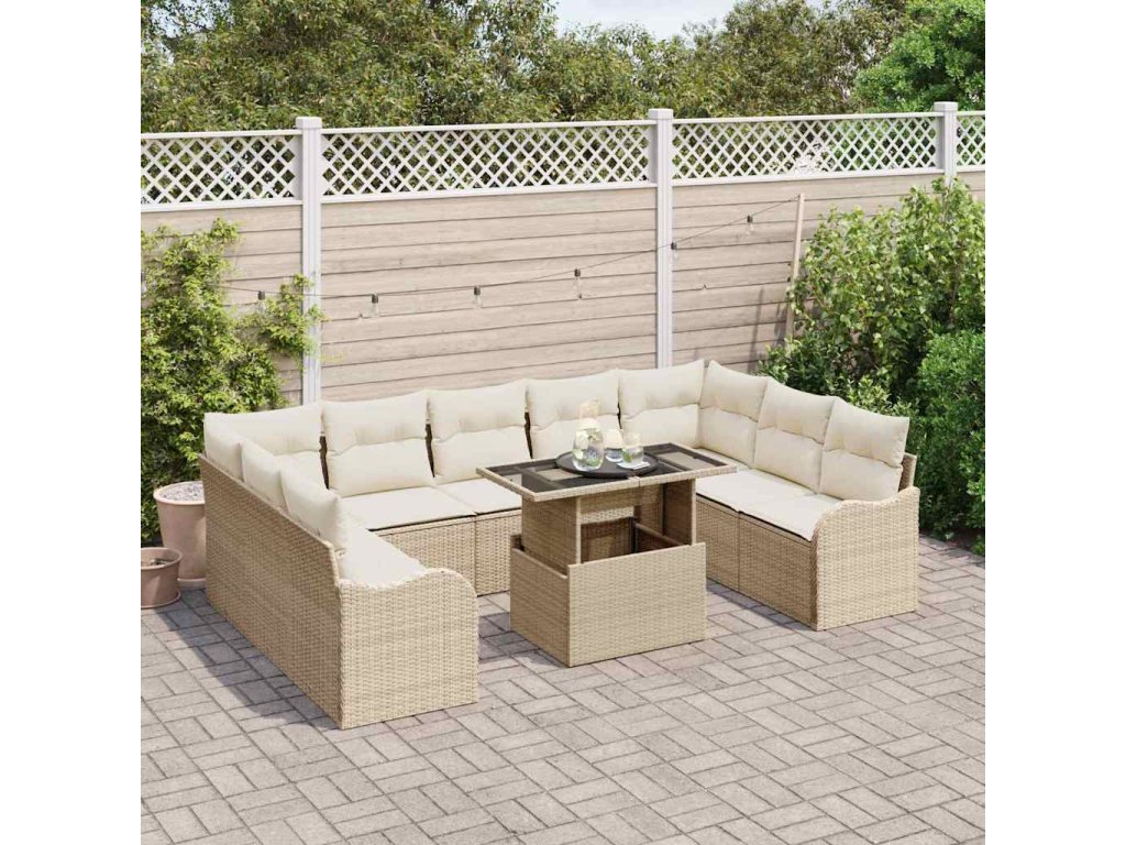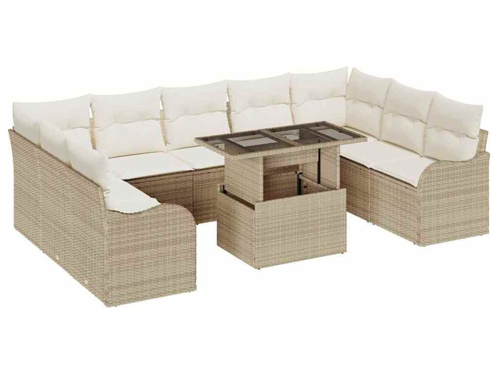 Sada zahradních pohovek s polštářem 10 pcs Béžová Poly ratan [3348527]