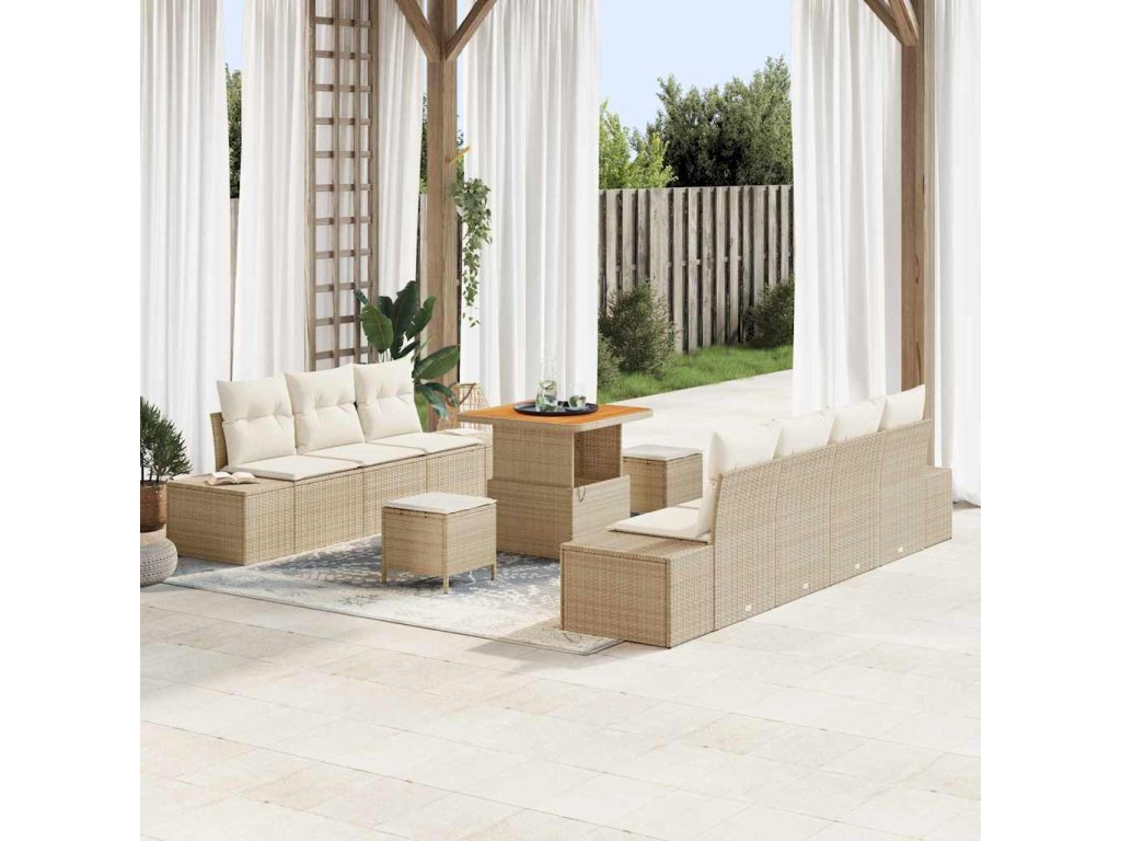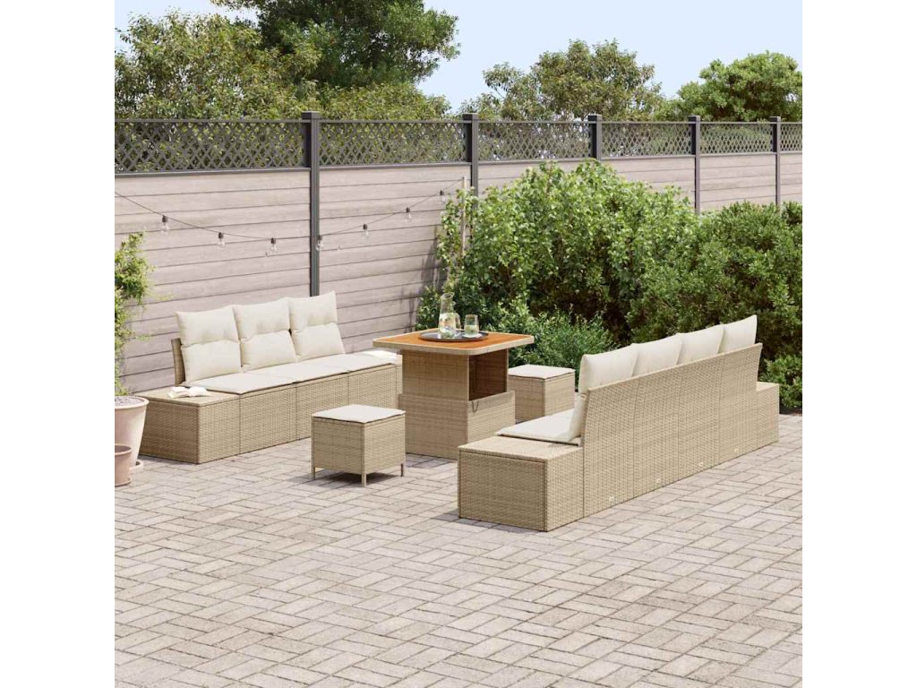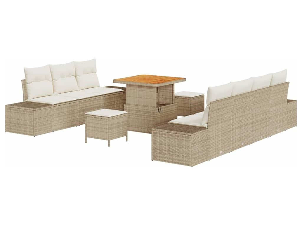 Sada zahradních pohovek s polštářem 10 pcs Béžová polyratan [3362746]