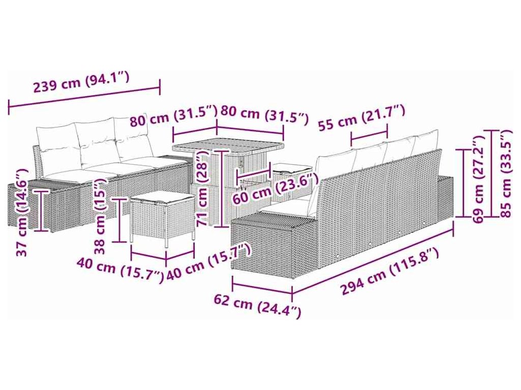 Tento moderní zahradní sedací set spojuje styl a funkčnost, čímž vytváří dokonalé místo na venkovní sezení pro jakoukoli zahradu nebo terasu. Vyrobený s ohledem na estetičnost, tento set do prostoru vnese současnou atmosféru, minimalistické linie a příjemný pocit, který zve k relaxaci a posezení s přáteli. Jeho modulární charakter umožňuje různá uspořádání, což usnadňuje jak neformální odpočinek, tak formální zábavu, takže je to základní kus pro jarní a letní posedávání venku. S elegantním vzhledem a pohodlím díky měkkým polštářům a ergonomickému designu, spojuje tento zahradní sedací set skvěle funkci s formou.