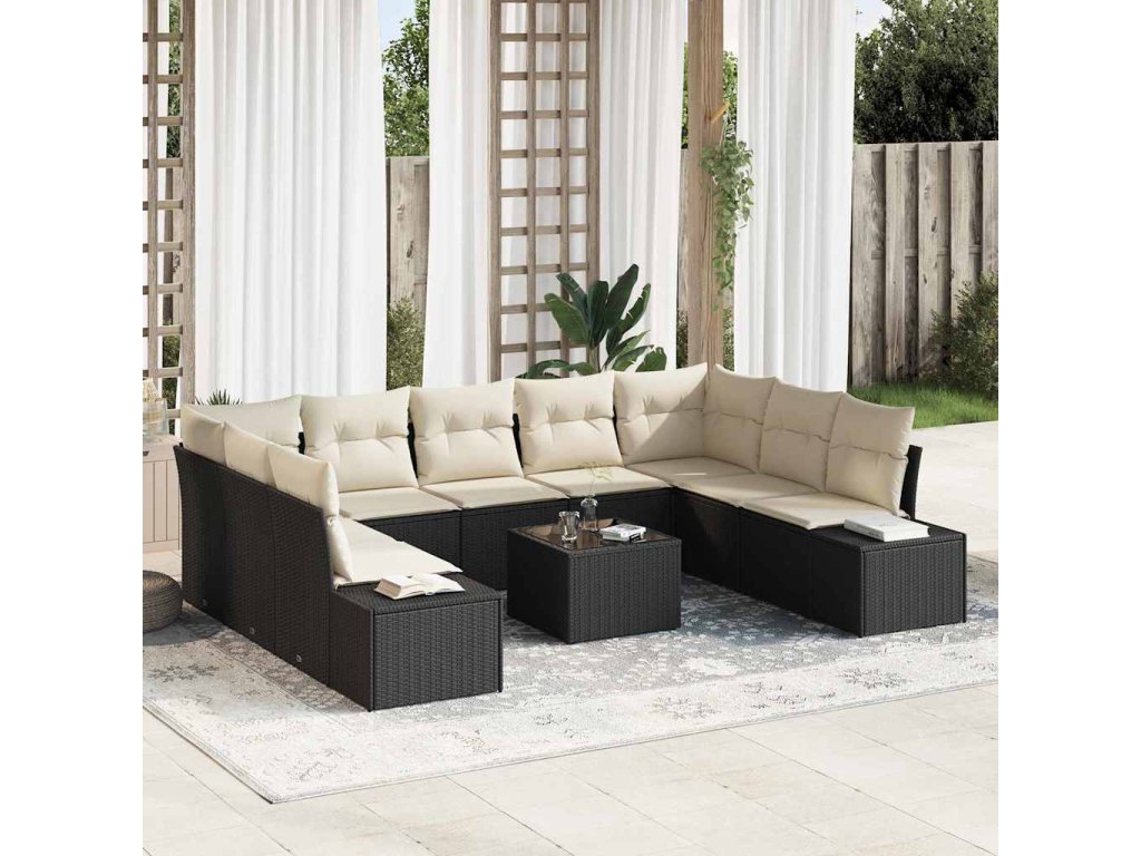 Sada zahradních pohovek 9 pcs Černá a krémová Polyratan [3355896]
