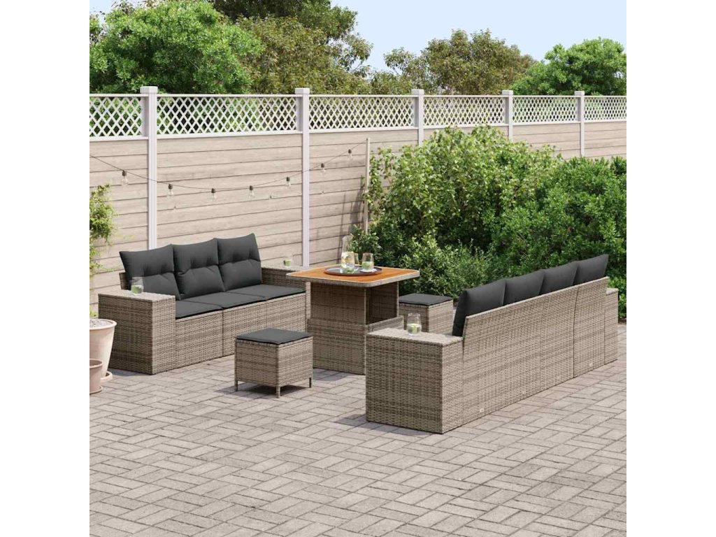 Sada zahradních pohovek s polštářem 10 pcs Šedá Poly Ratan [3363918]