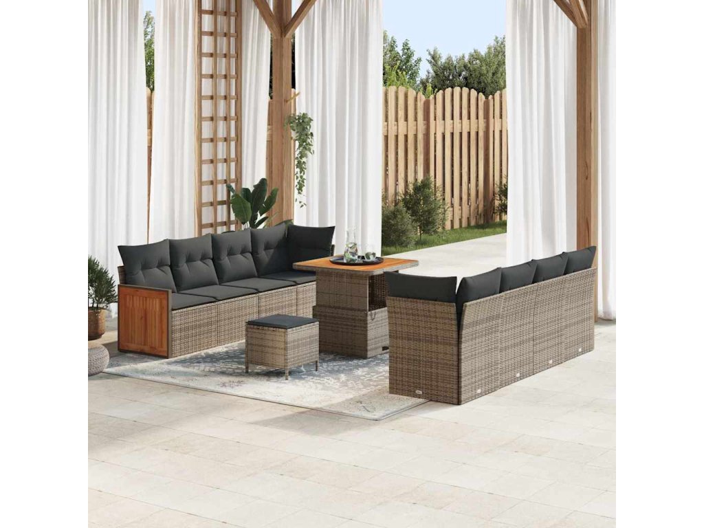 Sada zahradních pohovek s polštářem 11 pcs Šedá polyratan [3365228]