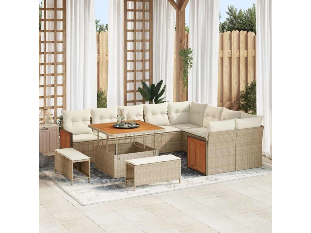 Sada zahradních pohovek s polštářem 12 pcs Béžová a krémová [3363336]
