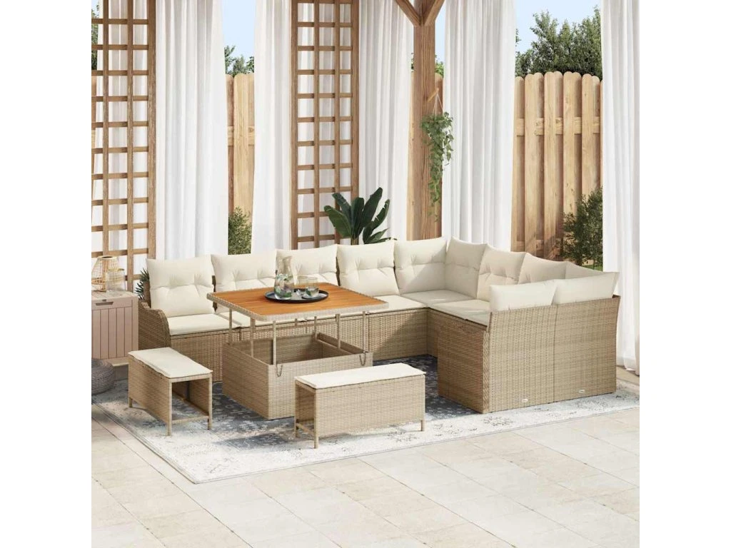 Sada zahradních pohovek s polštářem 12 pcs Béžová polyratan [3362296]