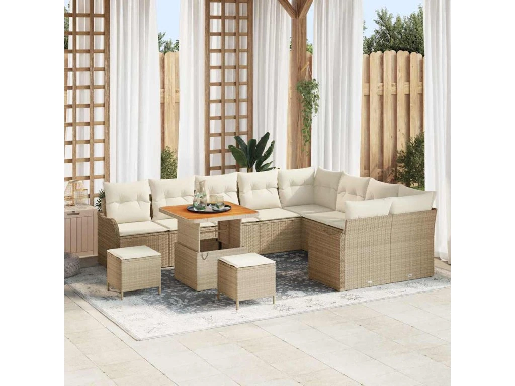 Sada zahradních pohovek s polštářem 12 pcs Béžová polyratan [3362301]