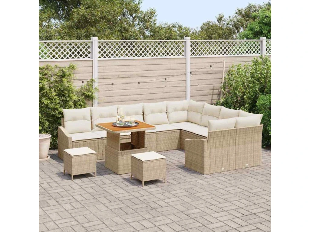 Sada zahradních pohovek s polštářem 12 pcs Béžová polyratan [3362691]