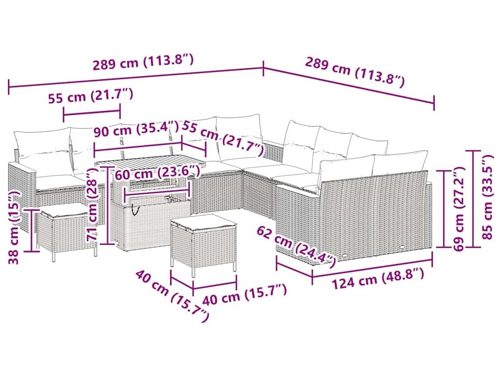 Tato moderní zahradní pohovková souprava je prostě super, minimalistický design ji dělá ideální pro každou zahradu nebo terasu. Je skládána tak, aby byla hezky vysoká na estetiku i funkčnost, s elegantními liniemi a decentními detaily. Rám je z poly ratanu, co se hodí do různých venkovních interiérů, a modulární design vám umožní hrát si s uspořádáním na setkání s přáteli a rodinou.
