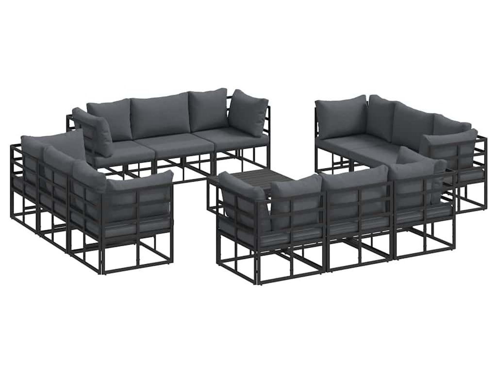 Sada zahradních pohovek s polštářem 13 pcs Černá Hliník [3378845]