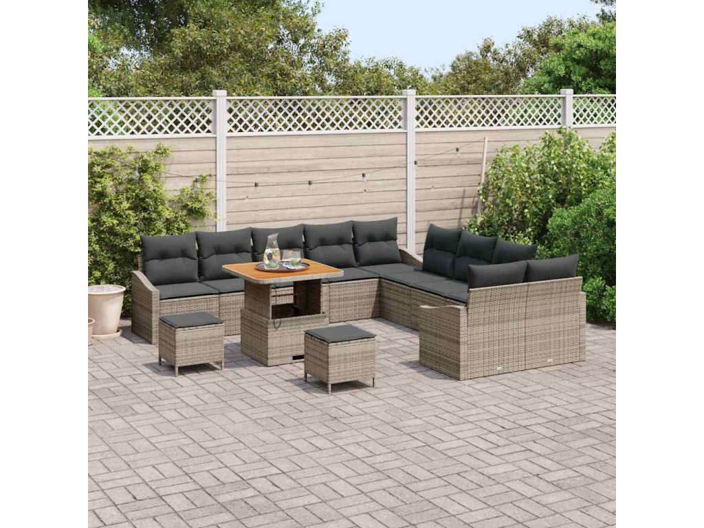 Sada zahradních pohovek s polštářem 13 pcs Šedá Poly ratan [3364663]