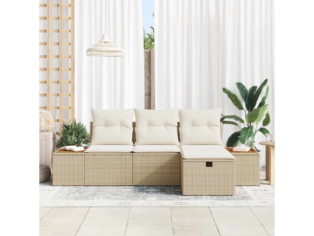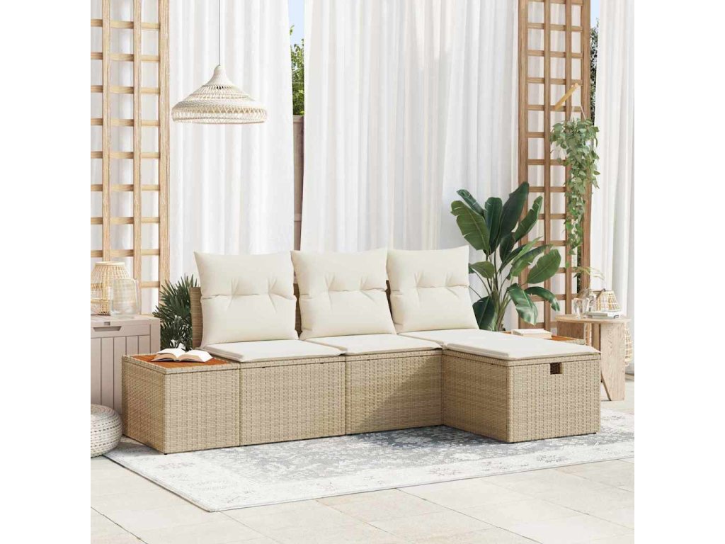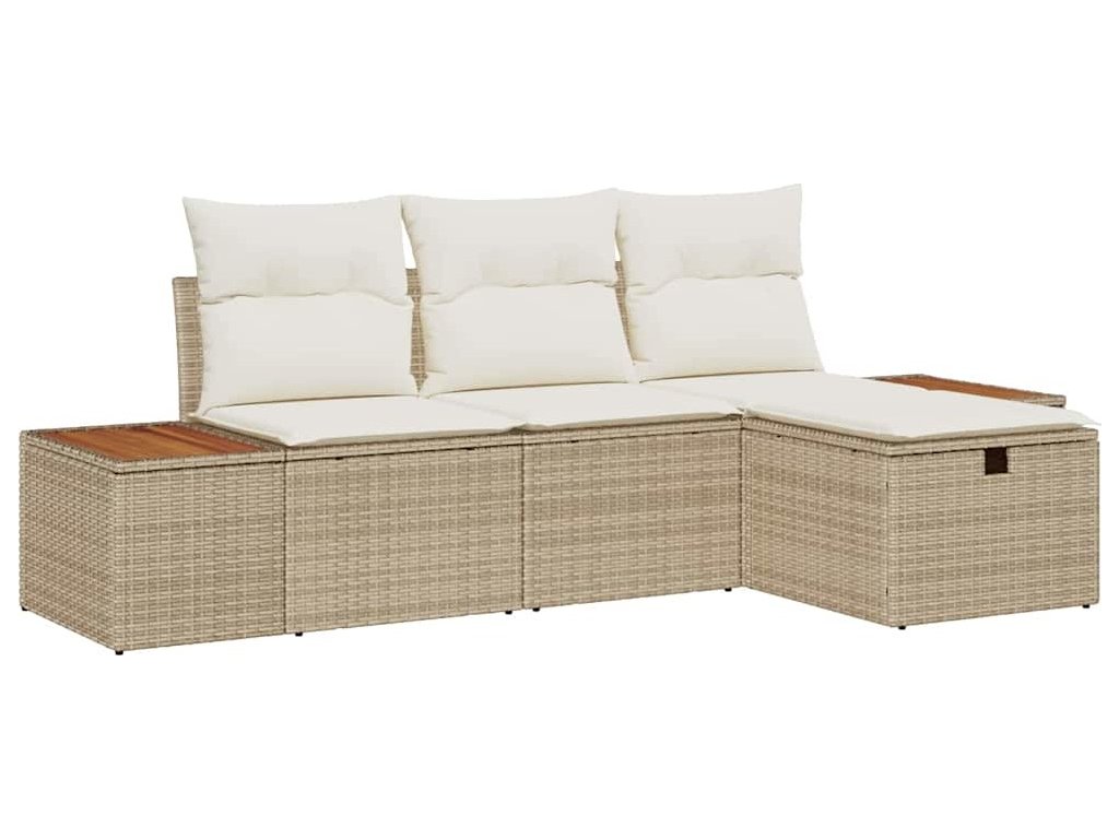 Sada zahradních pohovek s polštářem 4 pcs Béžová Poly ratan [3359618]