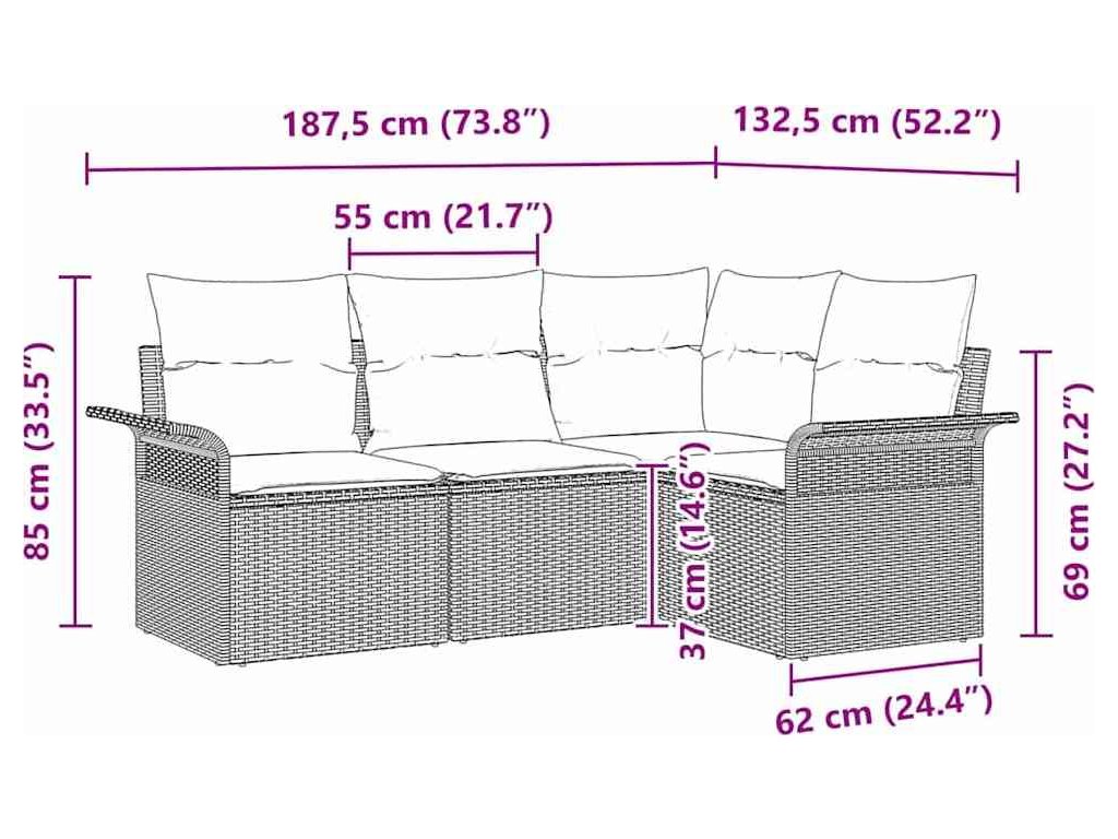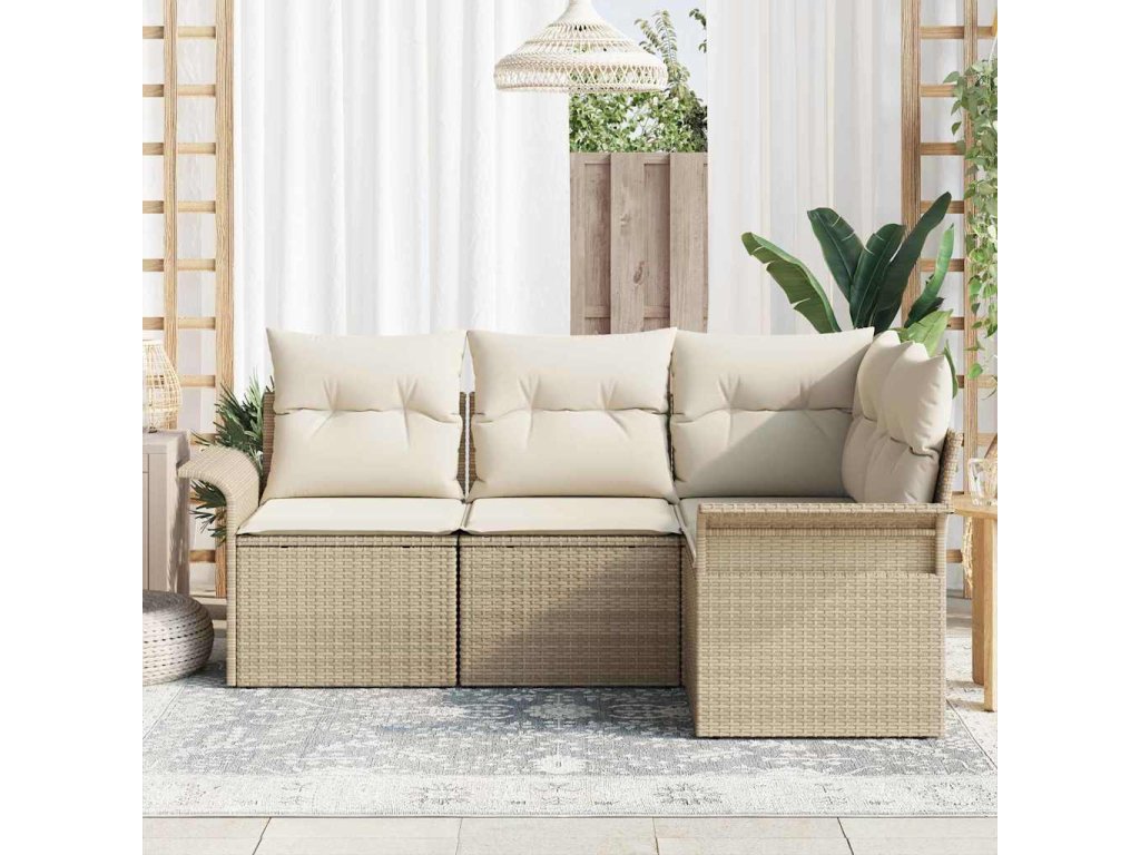 Sada zahradních pohovek s polštářem 4 pcs Béžová polyratan [3345341]