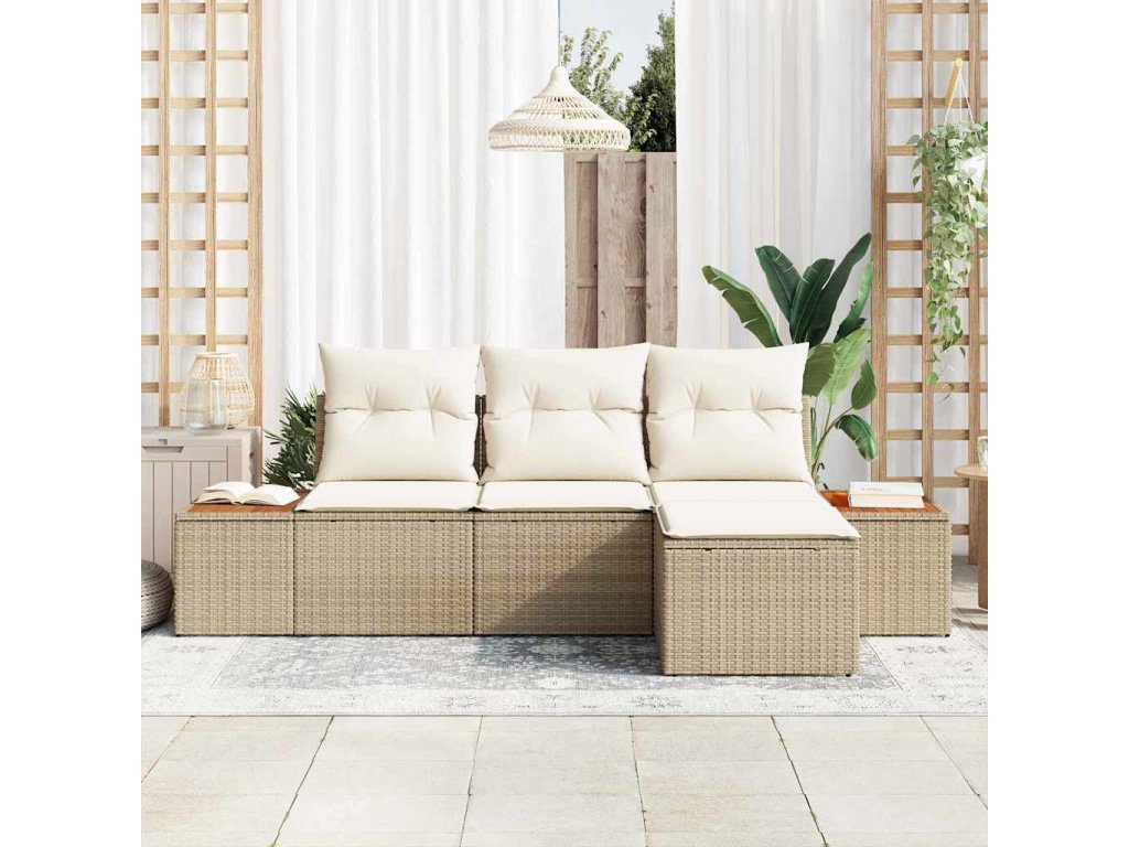 Sada zahradních pohovek s polštářem 4 pcs Béžová polyratan [3348062]