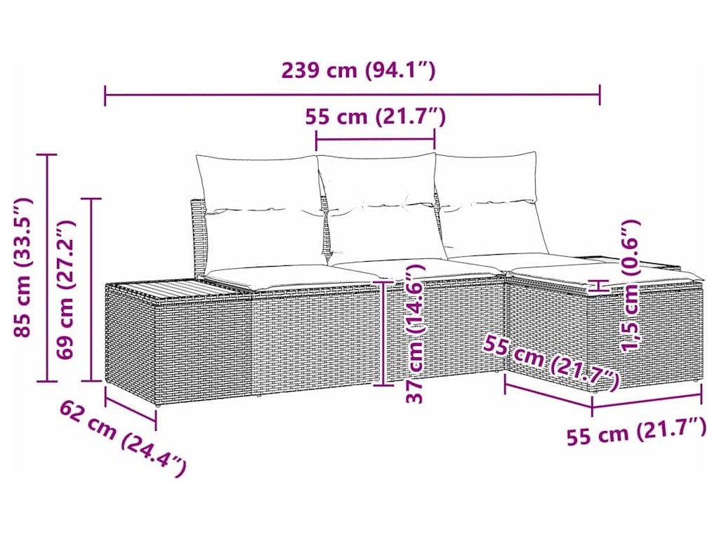 - Doporučené použití: Tento set je ideální na zahrady a terasy, pozve tě k relaxaci a setkání s přáteli. Jeho decentní styl ladí s různými dekoracemi a modulární uspořádání podporuje akce různých velikostí – od rodinných posezení po velké oslavy.